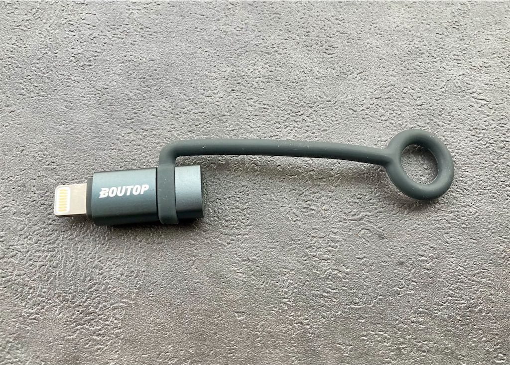 BOUTOPの「USB-Cメス → Lightningオス」変換アダプタです。 USB-Cケーブルの先に取り付けることで、そのままiPhoneを充電できるようになります。